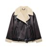 Winter Damen Doppelseitiges Revers Langarm Langer Jackenmantel Fleece-Steppfutter mit Gürtel