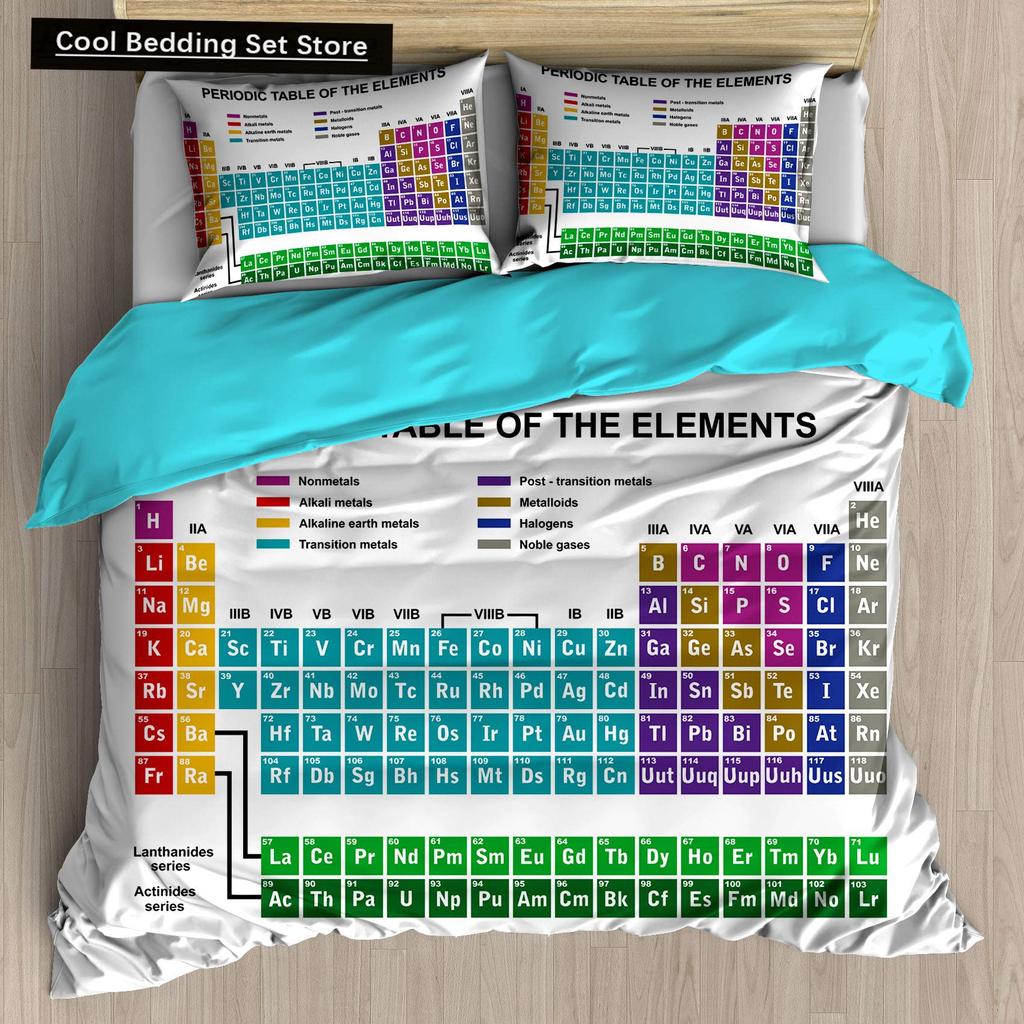 Periodensystem Königin König Bettbezug Pädagogische Wissenschaft Chemie Bettwäsche-Set für Studenten Lehrer Elementtabelle Bettdeckenbezug