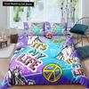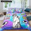 Freiheitsstatue Bettbezug Hip Hop Doppelgröße Friedenszeichen Liebesherz Bettwäscheset Amerikanische Augen Bunt Polyester Steppdecke