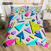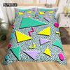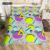 Bettwäsche-Set im Retro-80er-Jahre-Stil, Twin- und King-Size, abstraktes geometrisches Muster, Bettbezug-Set, Mikrofaser, Kreis- und Dreieck-Steppdecke