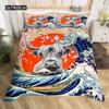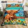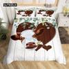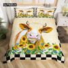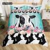 Kuh Bettbezug Set Twin King Size Bauernhoftier Bettwäsche Set Grüner Rankenblätter Druck Bettdeckenbezug Rustikale Holzbrett Steppdecke