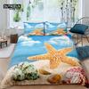 Seestern Muschel Strand Bettwäsche Set Mikrofaser Küste mit Sand mit buntem verschiedenen Muscheldruck Bettbezug Schlafzimmerdeko