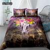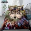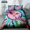 Bettbezug-Set mit Traumfänger-Tiermotiv, weißer Wolf, lila Federn, Mikrofaser, 2/3-teilig, Bettbezug für Kinder, Teenager, Erwachsene