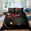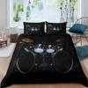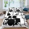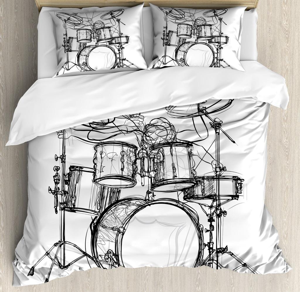 Rockmusik Weiß und Schwarz Bettbezug Doodle Zeichnung Skizze Schlagzeuger Musikalische Inspirationen Monochromes Arrangement Dekorativ Kinder
