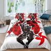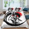 Japanisches Samurai Bettwäscheset, Japan Sonnenuntergang Landschaft Gebäudesilhouette Bettbezug für Männer Jugendliche, Schwarz Rot