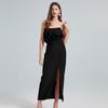 Summer Women 3D Rose Flower Sexy Strapless Open Back Slim Bodycon Split Evening Party Pencil Dresses