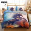Bettbezug mit weißem Drachenpferd, 3D-Einhorn-Bettwäscheset für Teenager und Kinder, Mikrofaser, Western-Cowboy-Bettbezug mit Kissenbezügen