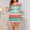 Damen Übergröße Gestreiftes Splicing Neues Taillen-Freizeitkleid