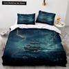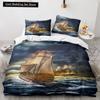 Vintage Segelboot König Königin Bettbezug Nautisches Ozean Bettwäscheset für Teenager Erwachsene Schiff Feuer Schwarz 2/3-teilig Polyester Steppdeckenbezug
