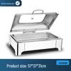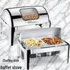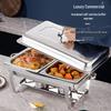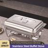Rechteckiger faltbarer Buffetofen aus Edelstahl mit Klappdeckel und isoliertem Alkoholbrenner.