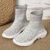 Herbststiefel Damenmode Strickstoff Stiefeletten Slipper Socken Schuhe Lässige Plateauschuhe Dicksohlige Rutschfeste Sneakers