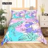 Flamingo-Bettbezug, Palmblatt, Kingsize, Tukan, Flamingos, Bettbezug, Mädchen, Jungen, Erwachsene, tropische botanische Blätter für das Wohnzimmer