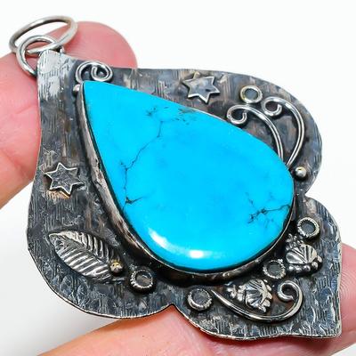 Anhänger aus 925er Sterlingsilber, natürlicher kupferblauer Türkis-Edelstein, 5,7 cm, c5H07