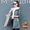 Autumn and Winter Plus Velvet Mid-length Overcoat Women's Slim All-match Hooded Parka Jacket Female Flocking Trench Coat