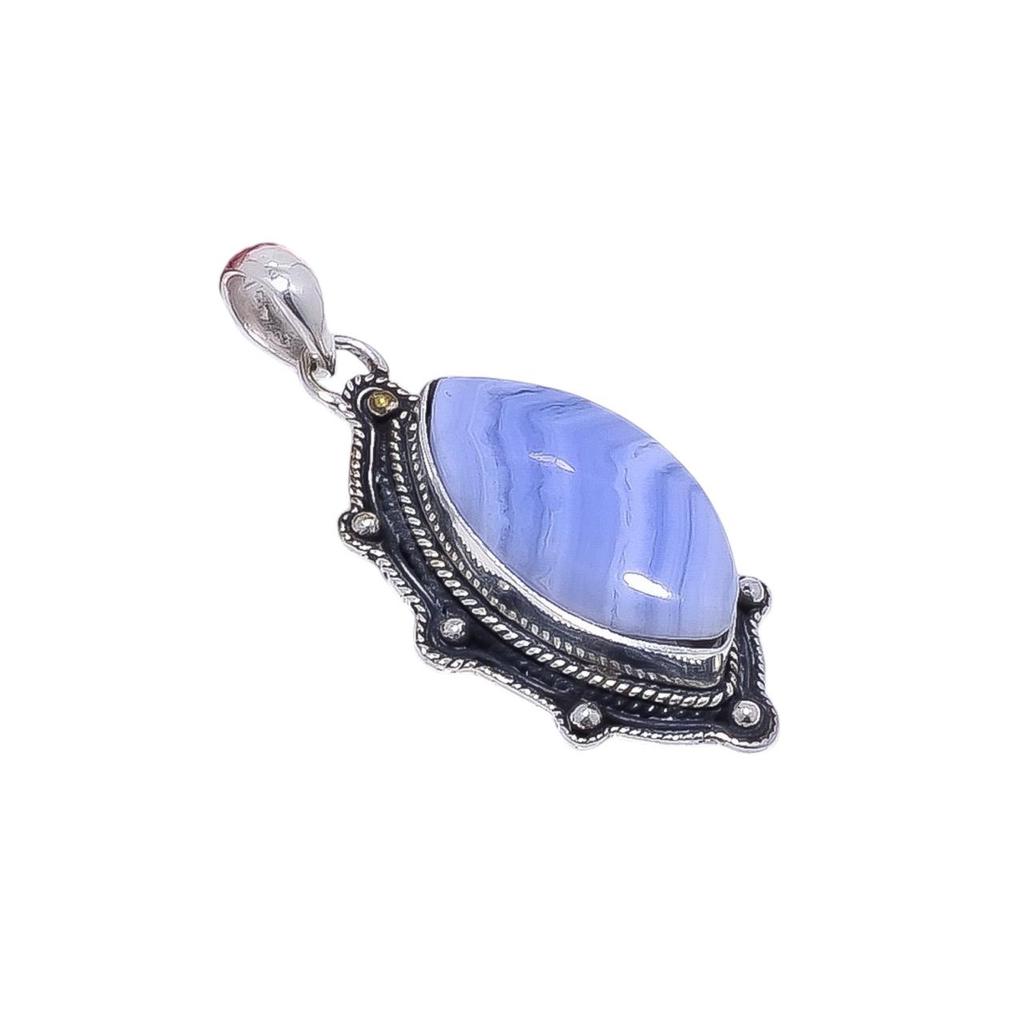 Blue Lace Agate - Namibia 925 Sterling Silver Pendant V9048, Blue Pendant, Marquish Pendant, Valentin's Day Gift, Gift For Her, Birthday Gift, Handmad