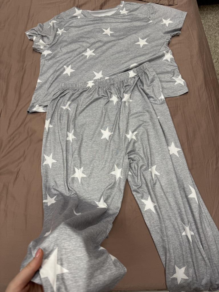 Pyjama-Set mit europäischem und amerikanischem Sternenmuster: Kurzarm-Oberteil & Hose für Damen