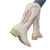 2024 Mode Damenstiefel Mid-Calf Damenstiefel Retro Alltagsstiefel Damen Stickerei Slipper Quadratische Zehenpartie Quadratischer Absatz Damenschuhe