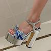 Modische farbige dünne Riemen sexy Sandalen offene Zehen hohe Absätze Party Hochzeit Nachtclub Damen dicker Absatz Peep-Toe Pumps Laufstegshows
