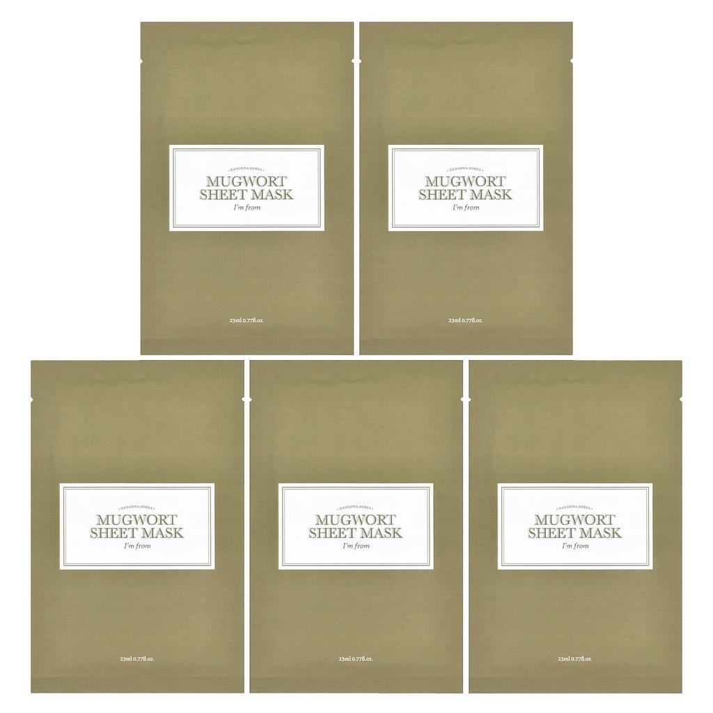 I'm From, Mugwork Beauty Sheet Mask, 5 sheets, 23ml (0.77fl oz) each