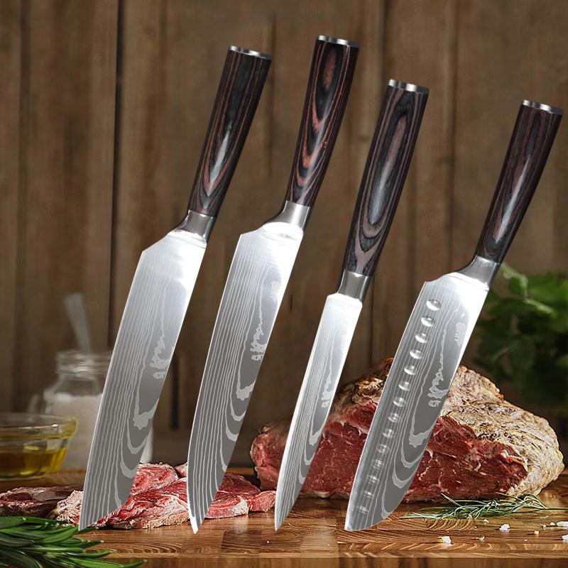 Küchenmesser-Set Damaskus-Kochmesser Professionelles Ausbeinmesser Japanisches Santoku-Fleischbeilmesser Küchenbedarf