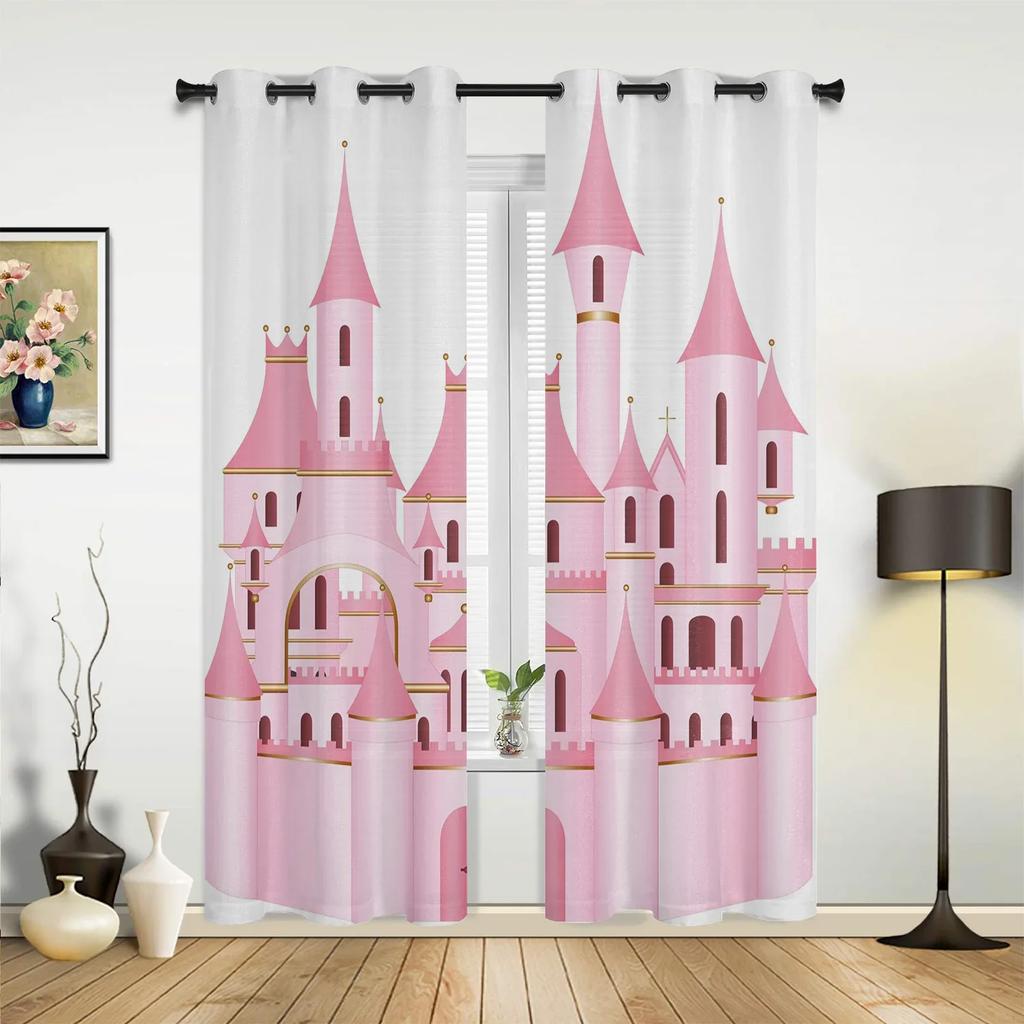 Rosa Cartoon Schloss Weiße Vorhänge für Schlafzimmer Wohnzimmer Vorhänge Küche Kinderzimmer Fenster Vorhang Moderne Heimdekoration