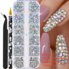 1 Schachtel Luxus Glänzende Diamant Nail Art Strasssteine Stein Strass Glas 3D Nägel Zubehör Schmuck AB/Bunt Hotfix Maniküre Dekorationen #