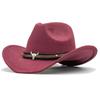 Simple upturned hat woolen jazz hat British top hat cow head belt solid color western cowboy hat