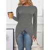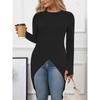 Neue einfarbige, rundhalsausschnitt, langärmelige, geteilte, lässige, temperamentvolle Pendelkleider in mittlerer Länge für Damen