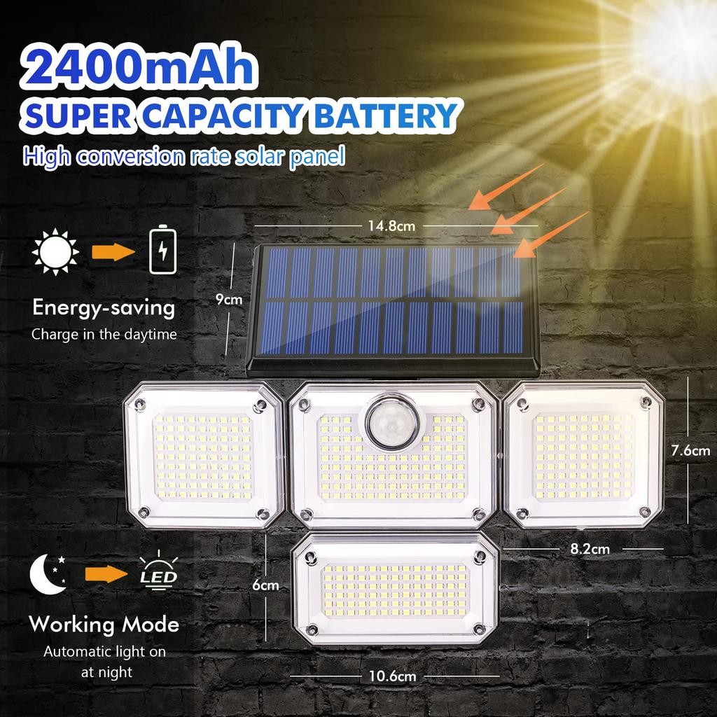 Solar Outdoor Light with Motion Sensor 333 LED Waterproof 5M LineSolar Floodlight 3 Modes 240º Solar Light for Garden Garage
