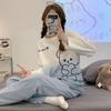 Damen Cartoon Bär Pyjama Frühling und Sommer Langärmelig Lässig Bequem Homewear Draußen Frauen Niedlich Floral Loungewear