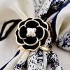 Neue Kamelien-Seidenschalschnalle, französische Retro-Perlenschalschnalle, quadratische Ringschnalle, orangefarbene Kristallschalschnalle für Frauen