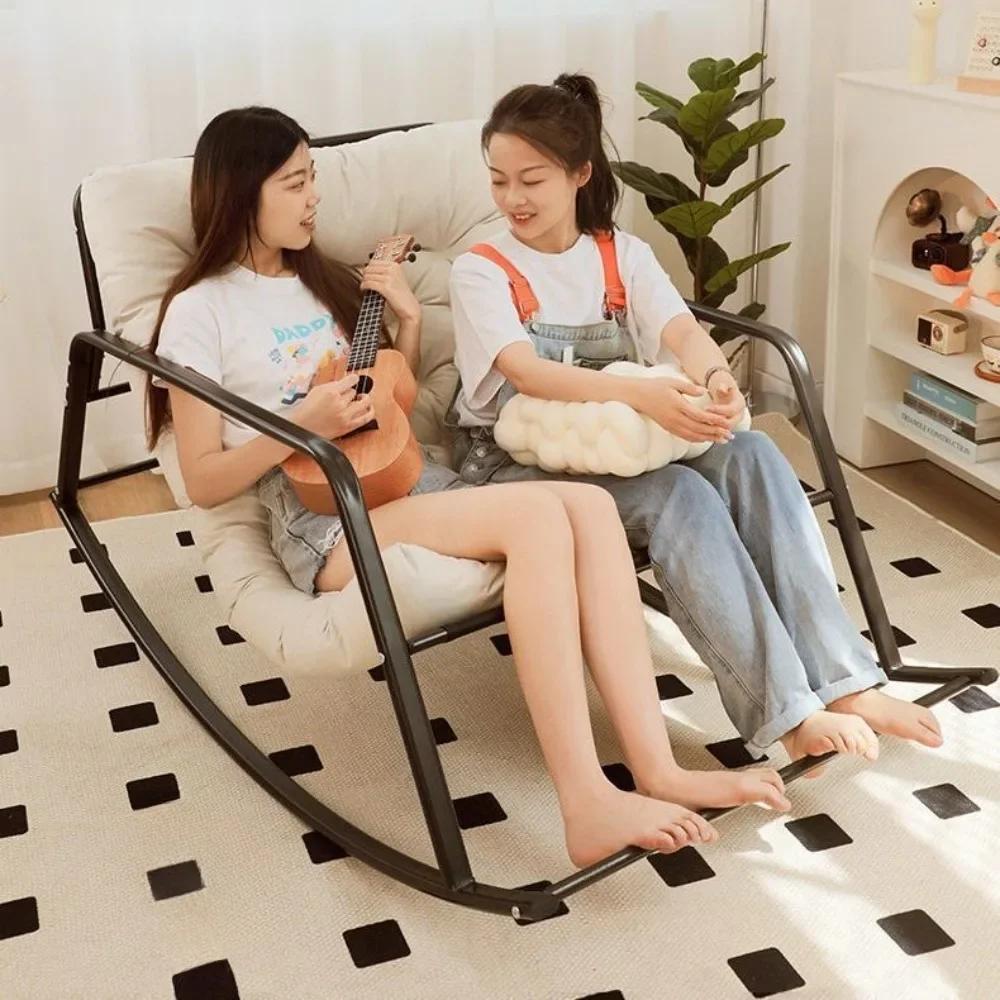 Double Rocking Chair Leisure Sofa Chairs Living Room Bedroom Lazy Comfortable Sofa Adjustable Backrest Detachable Rocking Chair