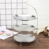 Weißer Desserttisch-Ausstellungsständer Hochzeitsdekoration Nachmittagstee Doppelschichtiger Tortenständer Goldfarbener Gebäckdekorationsteller 3-schichtig