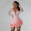 Damen Hot Drill Bubble Perlenkleid Mode Langarm Quadratkragen