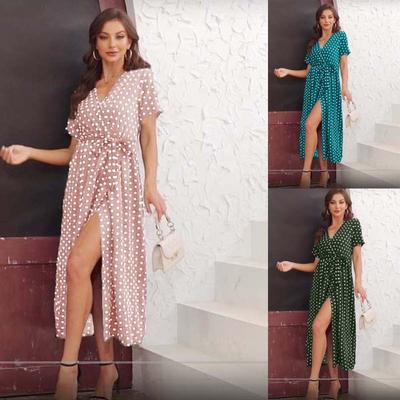 Sommer Kurzarm V-Ausschnitt Böhmisches Polka Dot Print Kleid