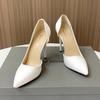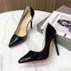 Spitze High Heels aus weißem Lackleder mit Stilettoabsatz, 11 cm, Größe 35–45, großes seitliches Hohldesign, sexy Stil.