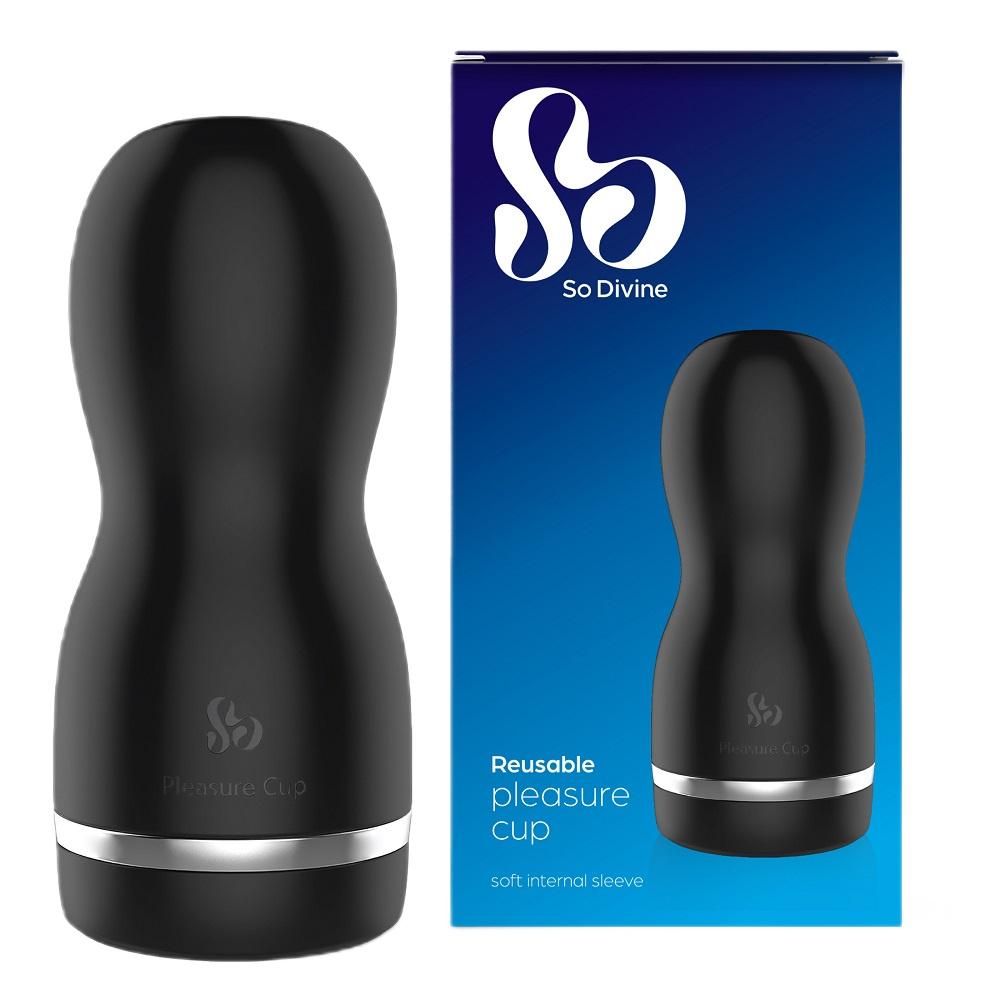 So Divine Reusable Pleasure Cup Multi-Use Masturbator - Black