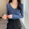 Frühlings-V-Ausschnitt Gestricktes Langarm Slim Fit Warmes Unterhemd Retro Pullover für Damen