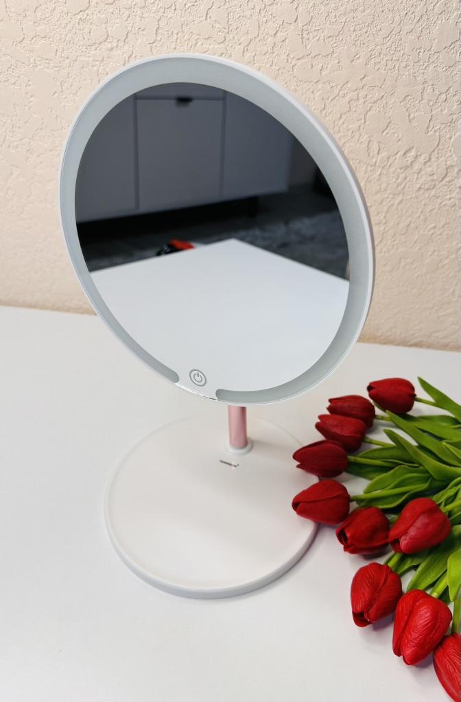 TEWIRROW LED-Schminkspiegel mit Licht, wiederaufladbar, 20,3 cm Helligkeit einstellbar, Kosmetikspiegel mit Beleuchtung in 3 Farben, Geschenk für Frauen