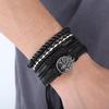 Geflochtene Wickelarmbänder aus Leder für Männer im Vintage-Stil mit Lebensbaum des Ruders, Charm-Holzperlen, ethnische Stammesarmbänder