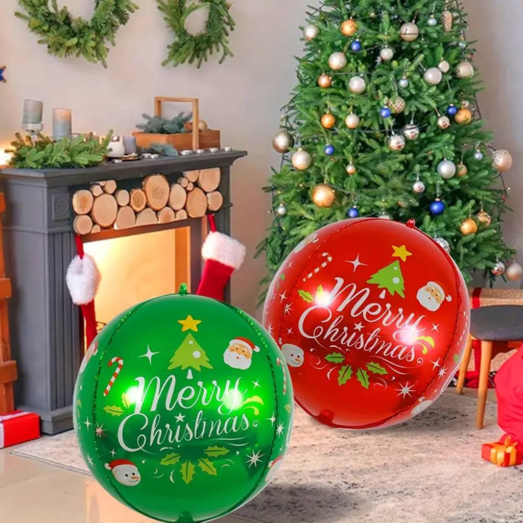 2/4 Frohe Weihnachten rot grün 4D Ballons, Weihnachtsfeier Dekorationen, Feiertagsrequisiten, Weihnachtsbaumkugeln, Neujahrsparty