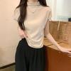 Sommer neues Design Halbrollkragen einfarbiges T-Shirt für Damen zur Altersreduzierung und für einen schlanken Look im schicken, einfachen Hong Kong-Stil zum Unterziehen