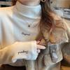 Dicker Samt Damen Langarm 2024 neuer Herbst- und Winterstil Weißer Rollkragen Innenliegendes Unterhemd Top