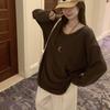 Weißes lockeres lässiges V-Ausschnitt Midilanges Langarm-Unterziehshirt für Damen im Herbst und Winter Deutsches Samt verdicktes Sweatshirt Oberteil