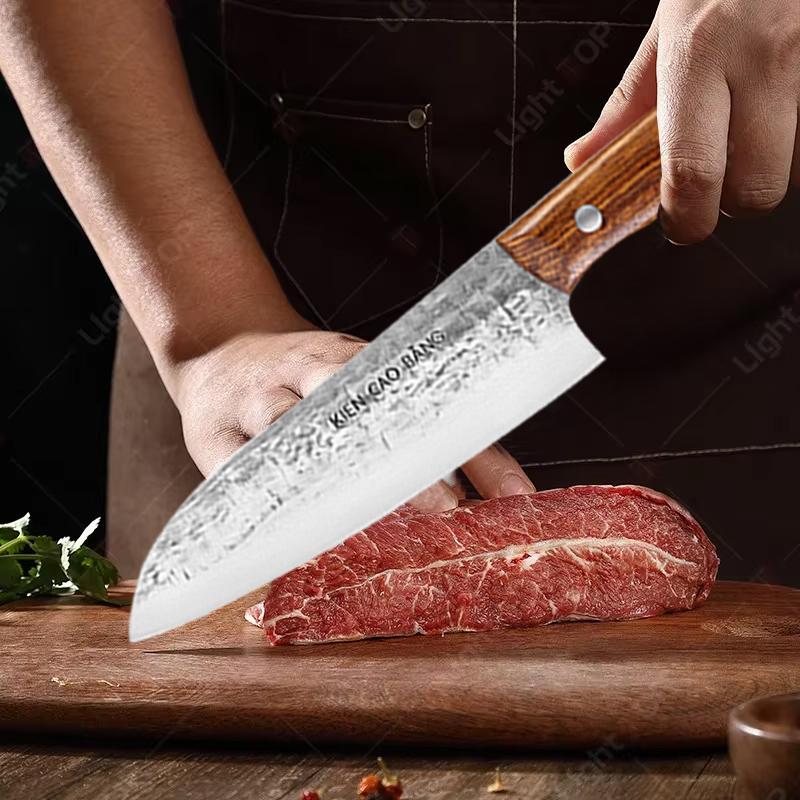 Professional Kitchen Knives Set Japanese Santouku Knife Fish Slicing Utility Knife Meat Cleaver Chef Knife Wooden Handle