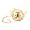 Teesieb aus Metall, Teekannenform, für losen Tee, Edelstahl-Ei, Blatt-Teebereiter, Sieb, Kette, Abtropfschale, Kräuter-/Gewürzfilter