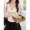 Reines Verlangen süßer und würziger Stil Schleife Spitze Kurzarm T-Shirt Damen Sommer schlankmachend und vielseitig kurzes schickes Oberteil