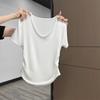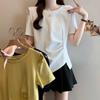 Cremegelb, weiß, süß, tief ausgeschnitten, kurzärmelig, Damen-Schulter-T-Shirt, Sommerdesign, plissierte Taille, schulterfreies Oberteil