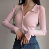 POLO-Pullover, Pullover, Damen, Frühling und Herbst, Primer-Shirt, langärmelig, kurzer Umlegekragen, hohle Knöpfe, gestrickte Tops, einfarbig, Einheitsgröße
