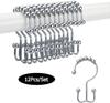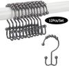 12 Stück Duschvorhang-Hakenringe aus Edelstahl mit Metallrollenkugel, doppelseitiger Schiebehaken für Badezimmer-Duschstangenvorhänge